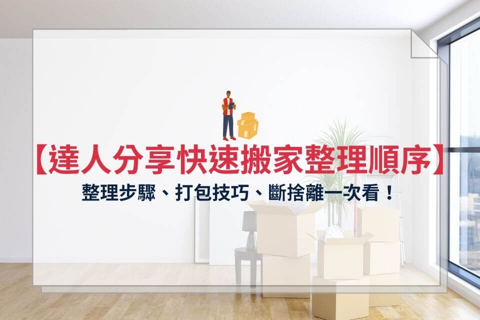 打包一直是很多搬家過程中最令人頭痛的一環,如果沒有規劃、按照順序歸類打包,不只是在整理過程中會雜亂無章,等搬到新家後,也可能因找不到東西,更令人抓狂或煩惱;沒有妥善打包也很容易造成物品在搬家過程造成損壞。想要在搬家整理過程中,快速整理物品,是需要搬家整理技巧的喔!本篇文統整了搬家整理順序,再也不用擔心搬家整理打包不完囉!