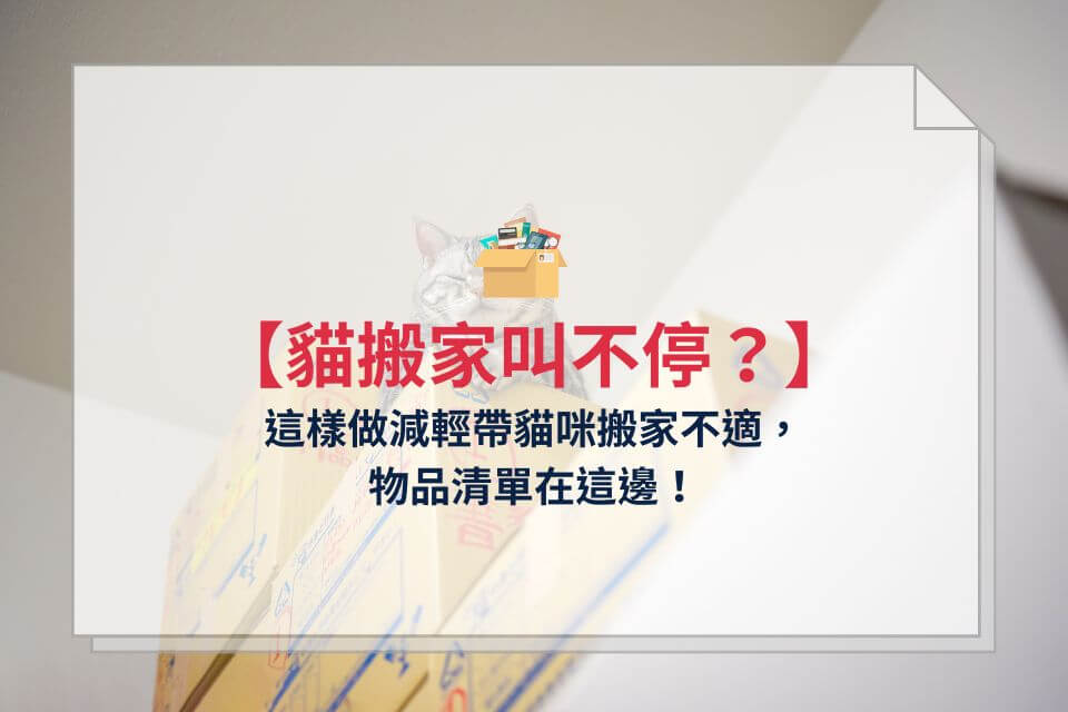 貓搬家是許多愛貓族的煩惱!搬家時,不論是大人或小孩都需要時間來適應新環境。愛貓族們一定知道,多數貓咪只要一離開熟悉的環境就會非常緊張,跟人類比起來,貓搬家時更容易感到不安而產生壓力,進而在新環境裡因過度緊張,甚至不敢吃飯或不敢上廁所。想要減少貓咪緊張的情緒壓力嗎?最好在貓搬家前1-2週就要開始做準備喔!